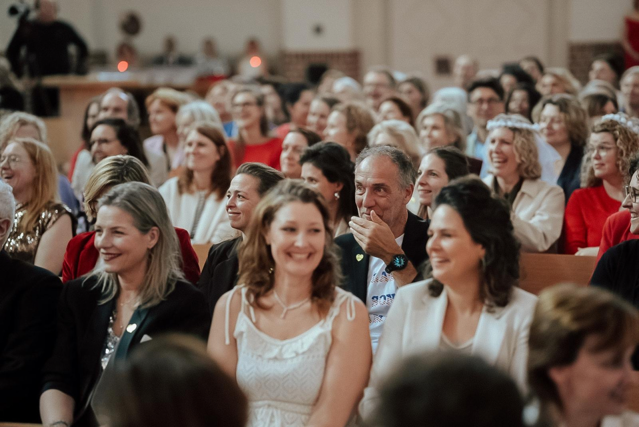 Dresscode: we vieren een feestje. We vinden het geweldig als je gekleed komt in: je oude trouwpak, -jurk, -outfit of eentje die je op de kop hebt getikt. Of een andere feestelijke outfit die je in een bruiloft-in-stijl zou aantrekken. Of kom in knalrood, spierwit of fonkelend goud als kleuren van de liefde, puurheid en de eeuwige verbinding. Met elkaar maken we er een spektakel van.