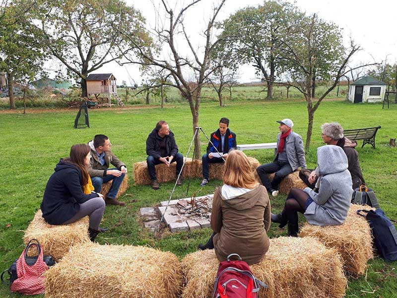 Stagesetting: Een kampvuur of ritueel organiseer je op een goede plek. Denk in theatertermen als je een event gaat organiseren: decor, kleding, licht, geluid, locatie zijn allesbepalend. Zorg dat die bij elkaar aansluiten en duidelijk zijn. Kies voor een vast thema of voor een duidelijke boodschap om uit te dragen. Als je concepten door elkaar heen gooit, raakt ons tribale brein in de war. Dus doe geen wat ouderwets jazz ensemble als je een heel hip op de toekomstgerichte industriele locatie hebt omdat je vooruit wilt kijken in de bijeenkomst.