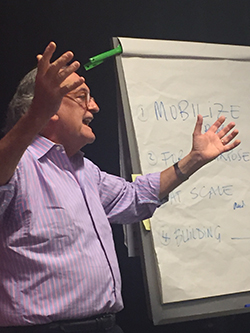 Dat proces van opschalen gaat niet zo maar. Dat moet je organiseren. Zorgvuldig designen. Drumbeat sessies organiseren. Continue de tam-tam slaan.